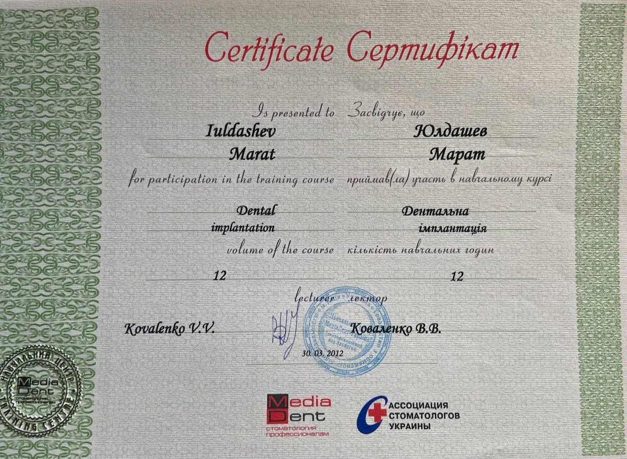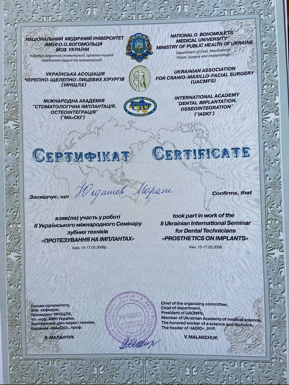Висококваліфікований стоматолог з багаторічним досвідом у хірургічній стоматології. Спеціалізується на імплантології та щелепно-лицевій хірургії, забезпечуючи пацієнтам надійну та професійну допомогу.